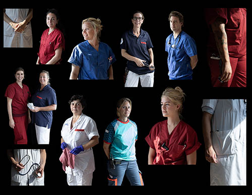 In 2024 Carla van de Puttelaar photographed a large groep of medical personnel in the emergency department of the OLVG West hospital. The exhibition was curated by Alessandra Laitempergher, Stichting Stimulus.
